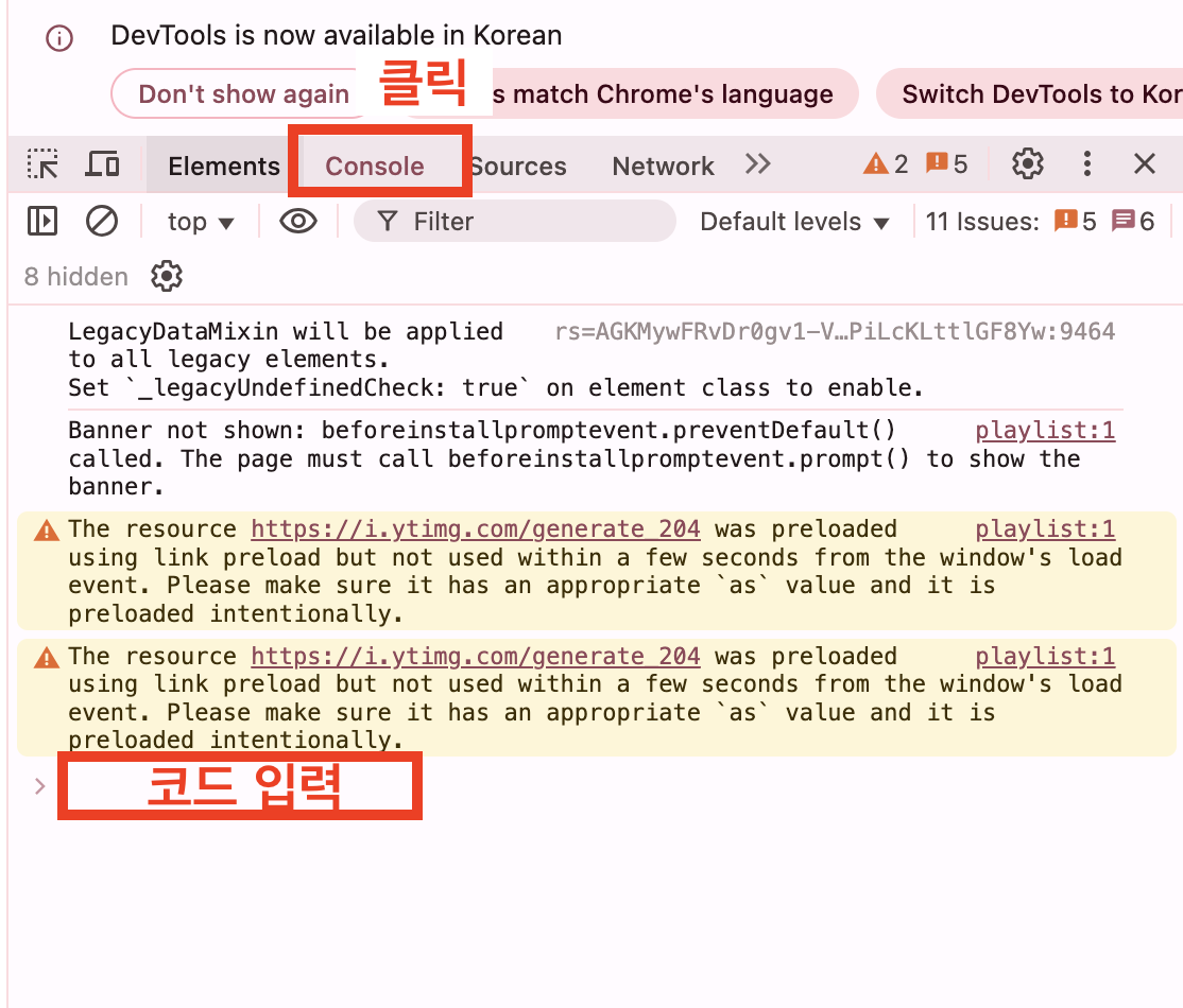 2. 개발자 도구(F12)를 열어 콘솔창을 연다.